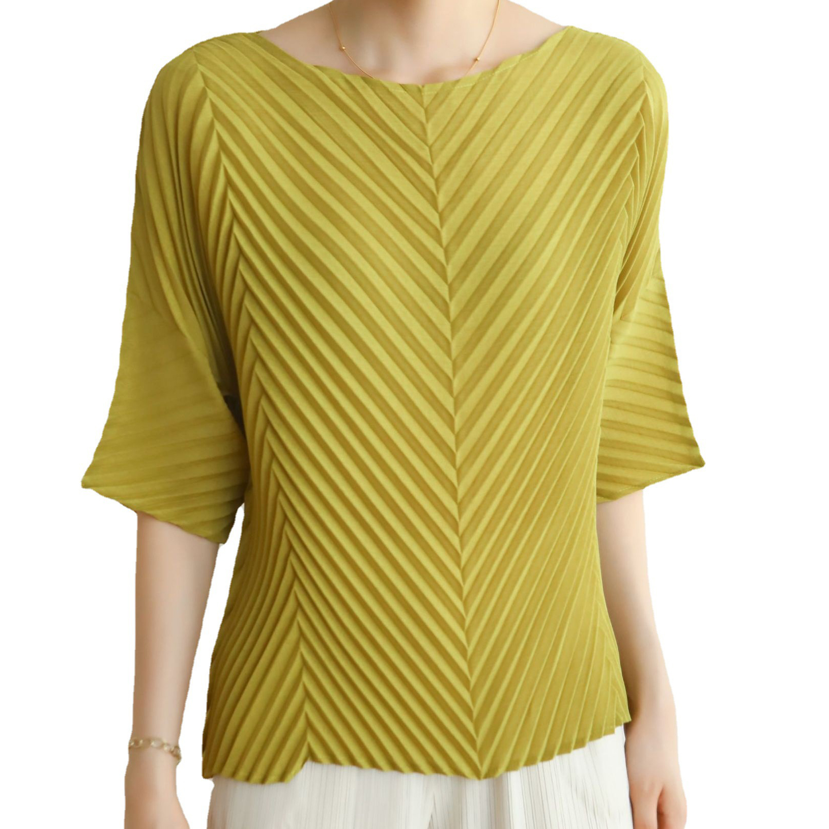 Pleating, meanwhile, brings the crisp, enduring dimension we know and love. Whether it’s sharp knife pleats, flowing sunray pleats, or delicate micro-pleats, this technique adds movement that lasts—fabric that sways with the wearer, holds its shape through wear, and elevates even the simplest silhouette. But when paired with folding? That’s where the magic shifts from “nice” to “unforgettable.”