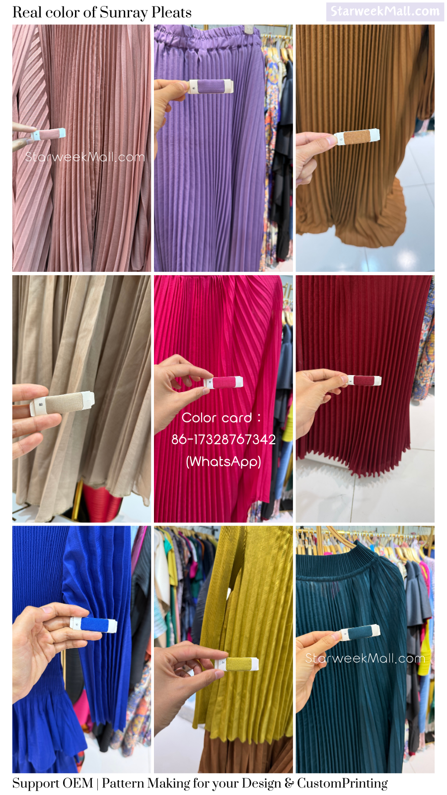 Struggling with color selection for custom garment orders? We’re here to simplify the process—this article spotlights curated color options for sunray pleats, designed to spark ideas for B2B/B2C sales teams, fashion designers, and procurement professionals. For detailed color swatches, reach out to 86-17328767342(WhatsApp)directly!