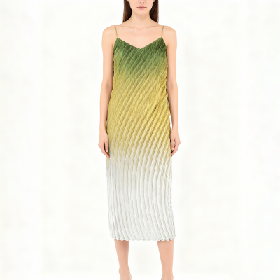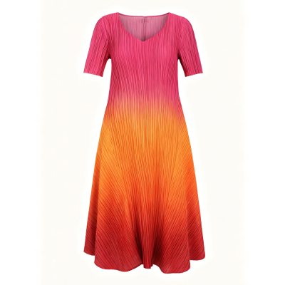 Orange gradient colors pleated a line Bubble Pleats dress