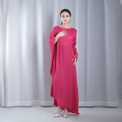solid color pleated boat Neck asymmetrical sleeve asymmetrical hemline maxi dresses evening gowns in pink
